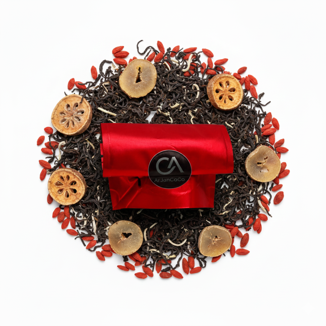 - 茶湯精粹:古樹紅茶 + 生物發酵桂圓、枸杞精華。