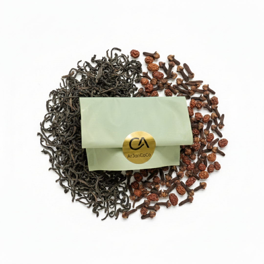 - 茶湯精粹:古樹紅茶 + 生物發酵丁香、五味子精華。